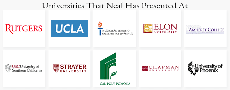 Neal is often called upon to help educate internal sales and marketing teams on a wide variety of social media-related topics, including Social Media Strategy, Social Selling, Employee Advocacy, Personal Branding, Influencer Marketing, Paid Social, Content Marketing, Social Media Tools, as well as the mechanics of how each social network works. In this respect, Neal offers private workshops as well as classes through the Rutgers University Business School as well as UCLA Extension.