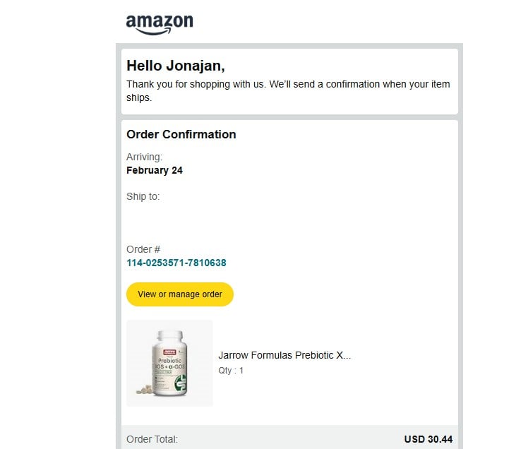 Order confirmation emails are perhaps the best known transactional message out there. These emails help support customer relationships by building trust and creating a safe spot to refer back to.